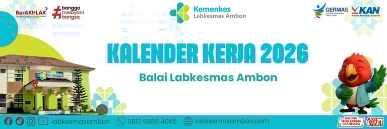Balai Laboratorium Kesehatan Masyarakat (Labkesmas) Ambon dengan bangga mempublikasikan Kalender Kerja 2026. Kalender ini merupakan wujud akuntabilitas kami dalam menjalankan tugas dan fungsi untuk mendukung program kesehatan masyarakat di wilayah Maluku.